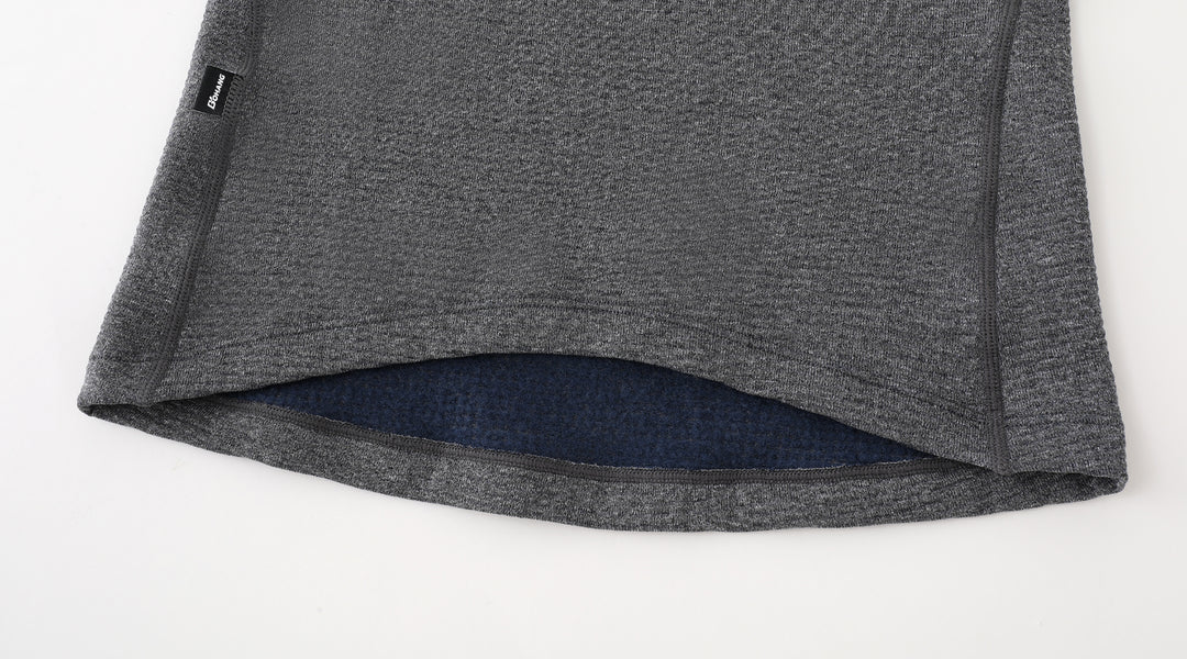 This Merino wool cycling base layer features a waffle-knit structure with a soft, brushed texture, providing enhanced heat retention and warmth—essential for deep winter layering. The garment is crafted with Flatlock/4 needles 6 threads at multiple points to prevent chafing and skin irritation.