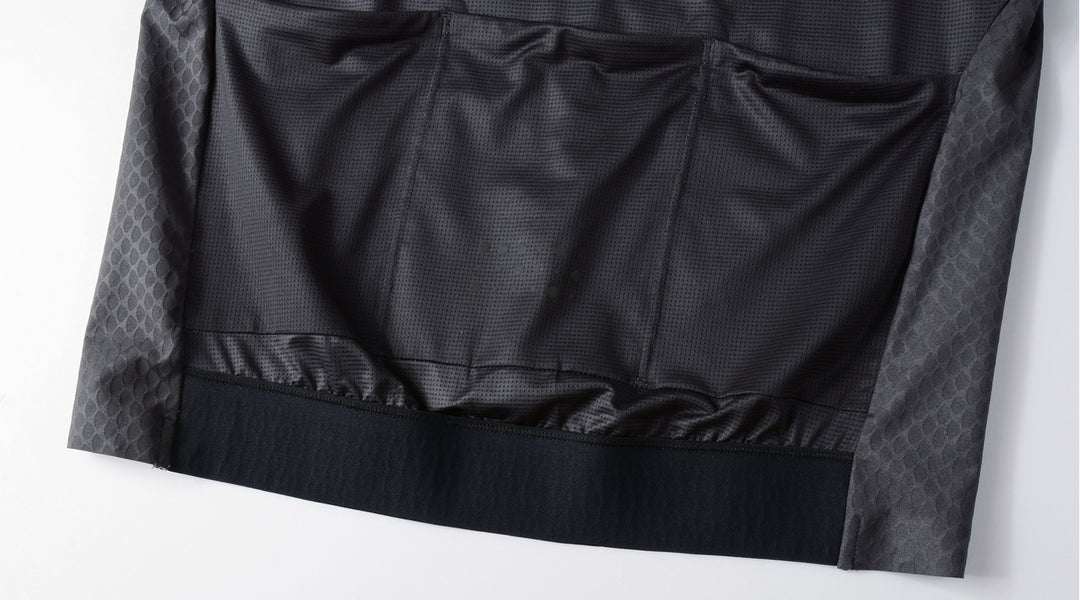 The hem incorporates a sturdy, elasticated silicon gripper for stability at speed and to hold jersey in-place in aggressive riding position.