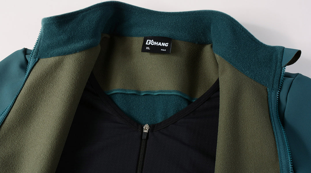 Double-layer performance jacket with inner liner for riding in cold weather.